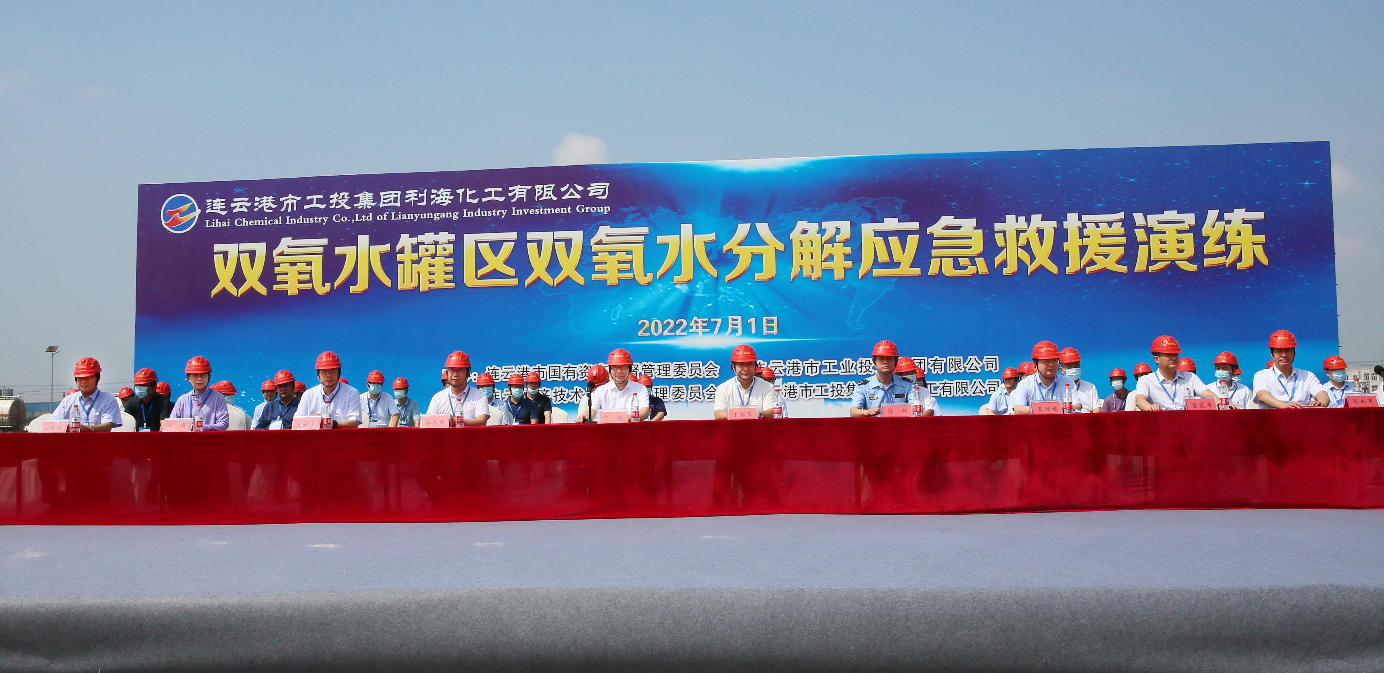 7月1日上午,集團(tuán)公司在利海化工公司開展雙氧水罐區(qū)雙氧水分解應(yīng)急處置演練。市國資委黨委委員、三級調(diào)研員王懷東,集團(tuán)公司安委會成員,各權(quán)屬單位主要負(fù)責(zé)人、分管安全負(fù)責(zé)人觀摩演練。集團(tuán)公司董事長、黨委書記丁銳宣布演練開始并作點(diǎn)評。