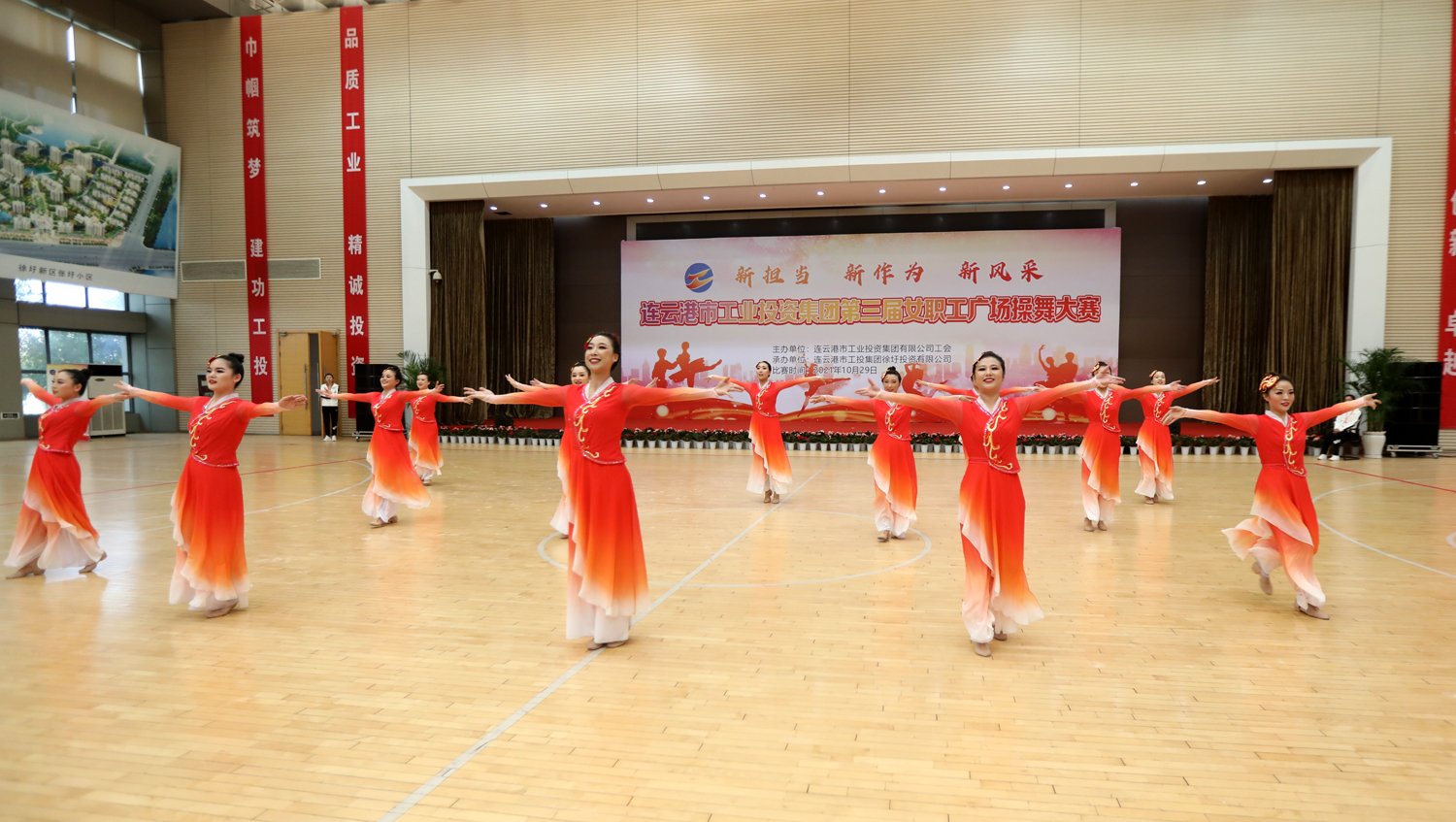 “新?lián)?、新作為、新風采”,增進職工友誼,凝聚團隊力量。10月29日,由集團工會主辦,徐圩投資公司承辦的集團公司第三屆女職工廣場操舞大賽在徐圩新區(qū)體育館激情開賽,來自各單位的11支代表隊近150名女職工共同獻上一場精彩的文化盛宴。市婦聯(lián)副主席臧永明,集團公司黨委副書記戴鴻鳴、紀委書記汪群、工會主席劉承志等領(lǐng)導參加活動。