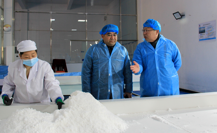 楊龍察看了金橋制鹽公司雪花鹽車間、加工鹽車間、包裝鹽車間生產(chǎn)現(xiàn)場(chǎng),詳細(xì)了解企業(yè)近期的產(chǎn)品生產(chǎn)銷售情況,要求該公司要繼續(xù)抓好疫情防控、產(chǎn)品市場(chǎng)開(kāi)拓和冬季安全生產(chǎn)工作。