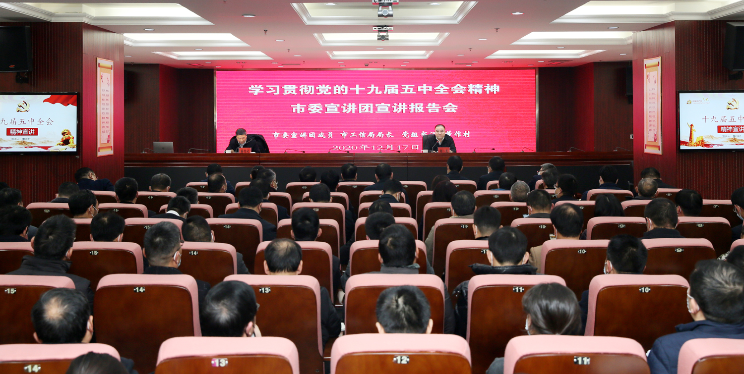 根據(jù)市委統(tǒng)一部署,12月17日,市委宣講團來集團開展黨的十九屆五中全會精神宣講活動。市委宣講團成員、工信局局長、黨組書記董作村作宣講報告。集團公司黨委書記、董事長楊龍主持宣講報告會。