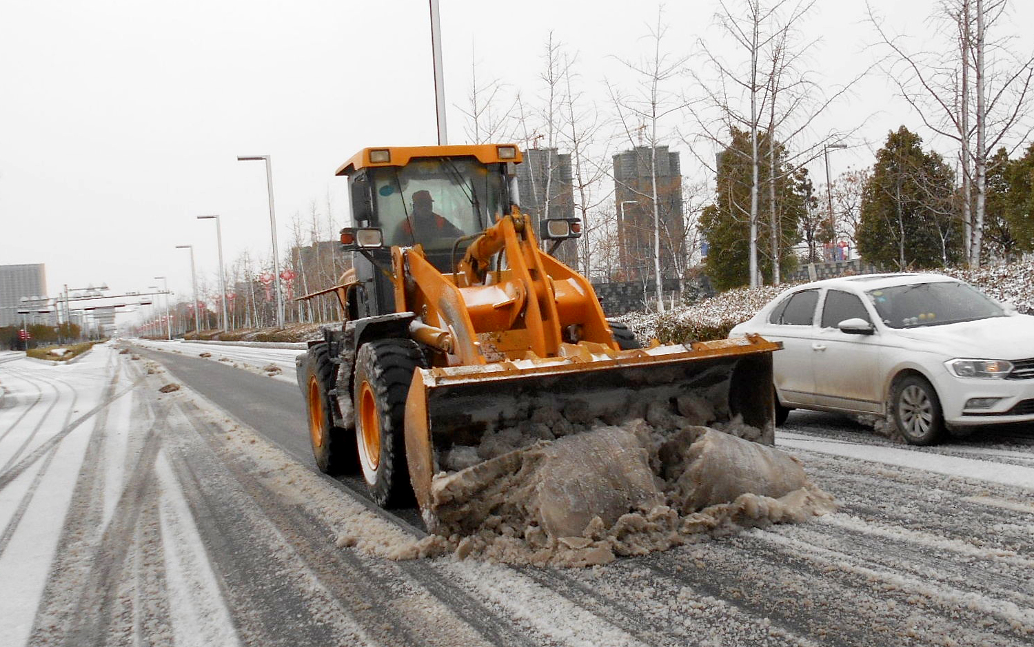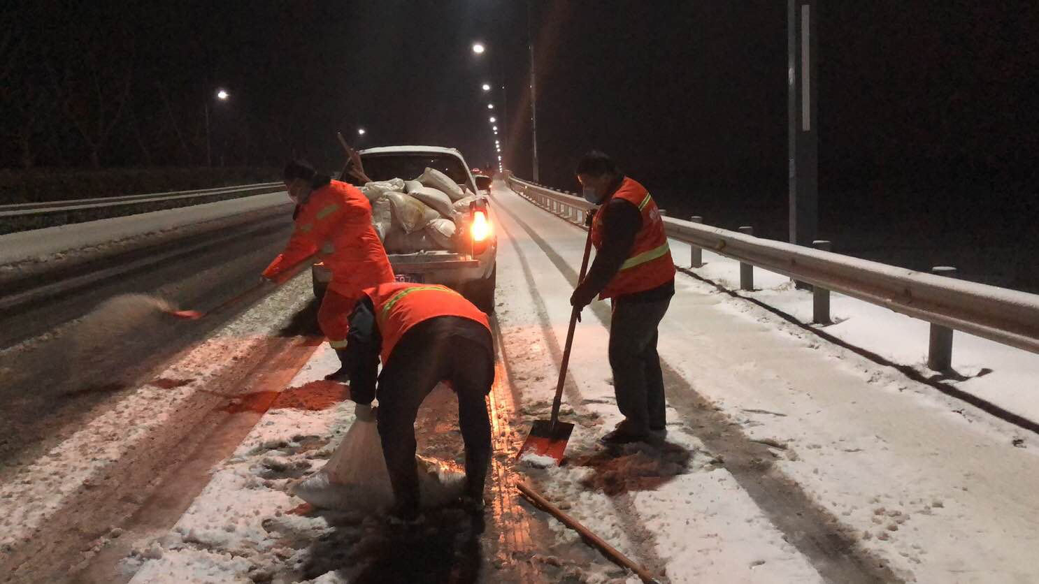 在開發(fā)區(qū)、徐圩新區(qū)、灌云臨港產業(yè)區(qū)的各個區(qū)域,到處都是集團綠化保潔人的最美身影,他們在各單位黨員先鋒隊、青年突擊隊的配合下,帶上融雪劑和作業(yè)工具,發(fā)揚不怕艱苦、連續(xù)作戰(zhàn)、敢打敢拼的工投精神,對交通要道、橋梁、彎道等重點防滑路段進行清雪防凍處理,鋪灑融雪劑40余噸,為疫情防控期間車輛行人出行安全增添一份保障。