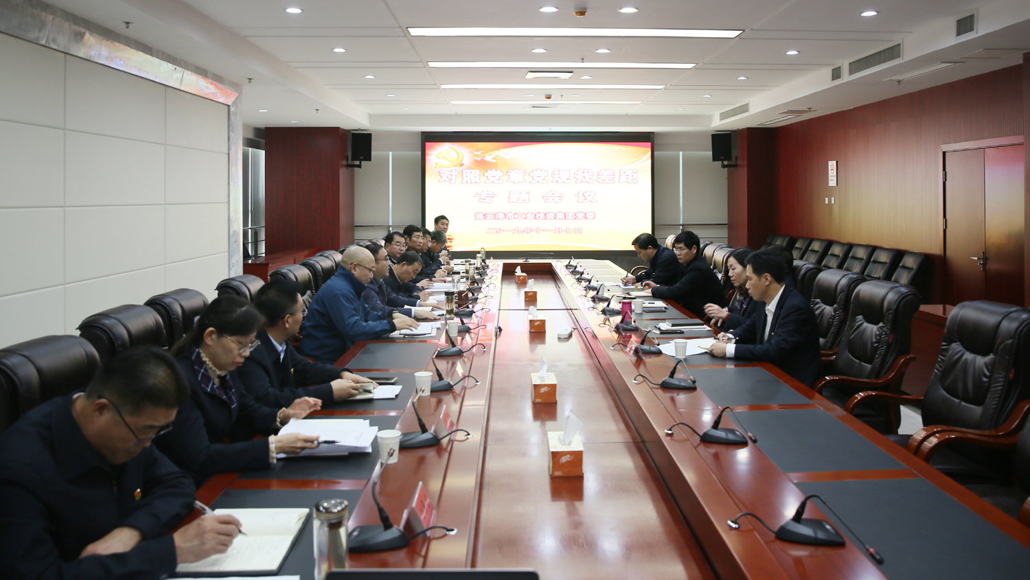 根據(jù)集團(tuán)公司“不忘初心、牢記使命”主題教育工作安排,11月7日下午,集團(tuán)公司黨委召開(kāi)對(duì)照黨章黨規(guī)找差距專(zhuān)題會(huì)議。黨委書(shū)記、董事長(zhǎng)、主題教育領(lǐng)導(dǎo)小組組長(zhǎng)楊龍主持會(huì)議,市委主題教育第十指導(dǎo)組副組長(zhǎng)、市國(guó)資委黨委委員、四級(jí)調(diào)研員王懷東到會(huì)指導(dǎo)。 會(huì)前,集團(tuán)公司黨委領(lǐng)導(dǎo)班子成員結(jié)合理論學(xué)習(xí)、調(diào)查研究、專(zhuān)題黨課等多種形式,深入學(xué)習(xí)黨章黨規(guī),認(rèn)真撰寫(xiě)對(duì)照檢查材料。會(huì)上,楊龍首先作個(gè)人對(duì)照檢查,其它黨委領(lǐng)導(dǎo)班子成員逐一發(fā)言,圍繞守初心、擔(dān)使命,找差距、抓落實(shí)的總要求,對(duì)照黨章黨規(guī),緊扣“18個(gè)是否”,以正視問(wèn)題的自覺(jué)和刀刃向內(nèi)的勇氣,主動(dòng)把自己擺進(jìn)去、把職責(zé)擺進(jìn)去、把工作擺進(jìn)去,不遮掩問(wèn)題、不回避矛盾,開(kāi)誠(chéng)布公、坦誠(chéng)相見(jiàn),檢視問(wèn)題不遮遮掩掩、不避重就輕,相互提醒開(kāi)門(mén)見(jiàn)山、直截了當(dāng),做到了落細(xì)落小落具體、見(jiàn)人見(jiàn)事見(jiàn)思想,達(dá)到了“團(tuán)結(jié)—批評(píng)—團(tuán)結(jié)”的目的。