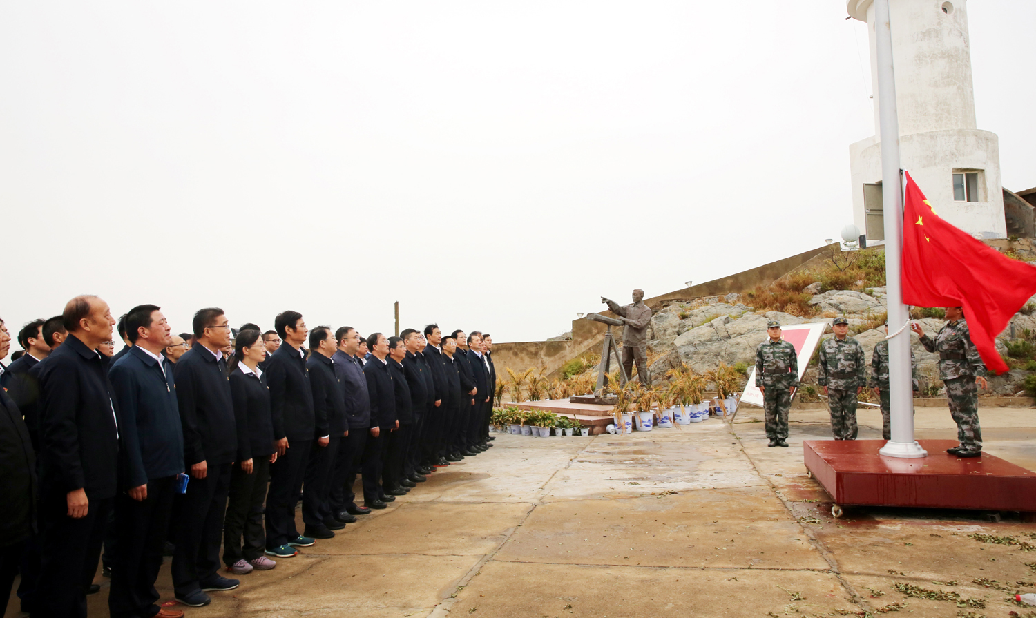 為進(jìn)一步踐行“不忘初心、牢記使命”主題教育,追尋“人民楷?!蓖趵^才、王仕花夫婦的守島精神,10月10日,集團(tuán)公司黨委書記、董事長(zhǎng)楊龍,總經(jīng)理胡建明等黨委領(lǐng)導(dǎo)班子成員與機(jī)關(guān)部分黨員、各單位黨內(nèi)先進(jìn)代表等共100人,冒雨赴江蘇省干部黨性教育基地——開(kāi)山島,開(kāi)展“學(xué)習(xí)人民楷模王繼才、踐行初心使命勇?lián)?dāng)”黨性教育活動(dòng)。 在面積只有兩個(gè)足球場(chǎng)大的開(kāi)山島上,全體黨員參觀了王繼才同志生前工作生活過(guò)的場(chǎng)所,看望慰問(wèn)王仕花和守島民兵,舉行莊嚴(yán)的升國(guó)旗和重溫入黨誓詞儀式。在王繼才先進(jìn)事跡展覽室,一件件實(shí)物和一幅幅圖片,從不同角度、不同側(cè)面生動(dòng)的再現(xiàn)了王繼才“島就是家、島就是國(guó)”,扎根海島、獻(xiàn)身海防的先進(jìn)事跡和奉獻(xiàn)精神。活動(dòng)期間,大家還觀看了紀(jì)錄片《守島32年》,認(rèn)真聆聽(tīng)了王仕花講授的關(guān)于守島衛(wèi)國(guó)32年,用無(wú)怨無(wú)悔的堅(jiān)守和付出,在平凡的崗位上書寫了不平凡人生華章的微黨課。