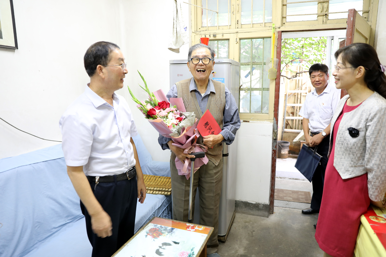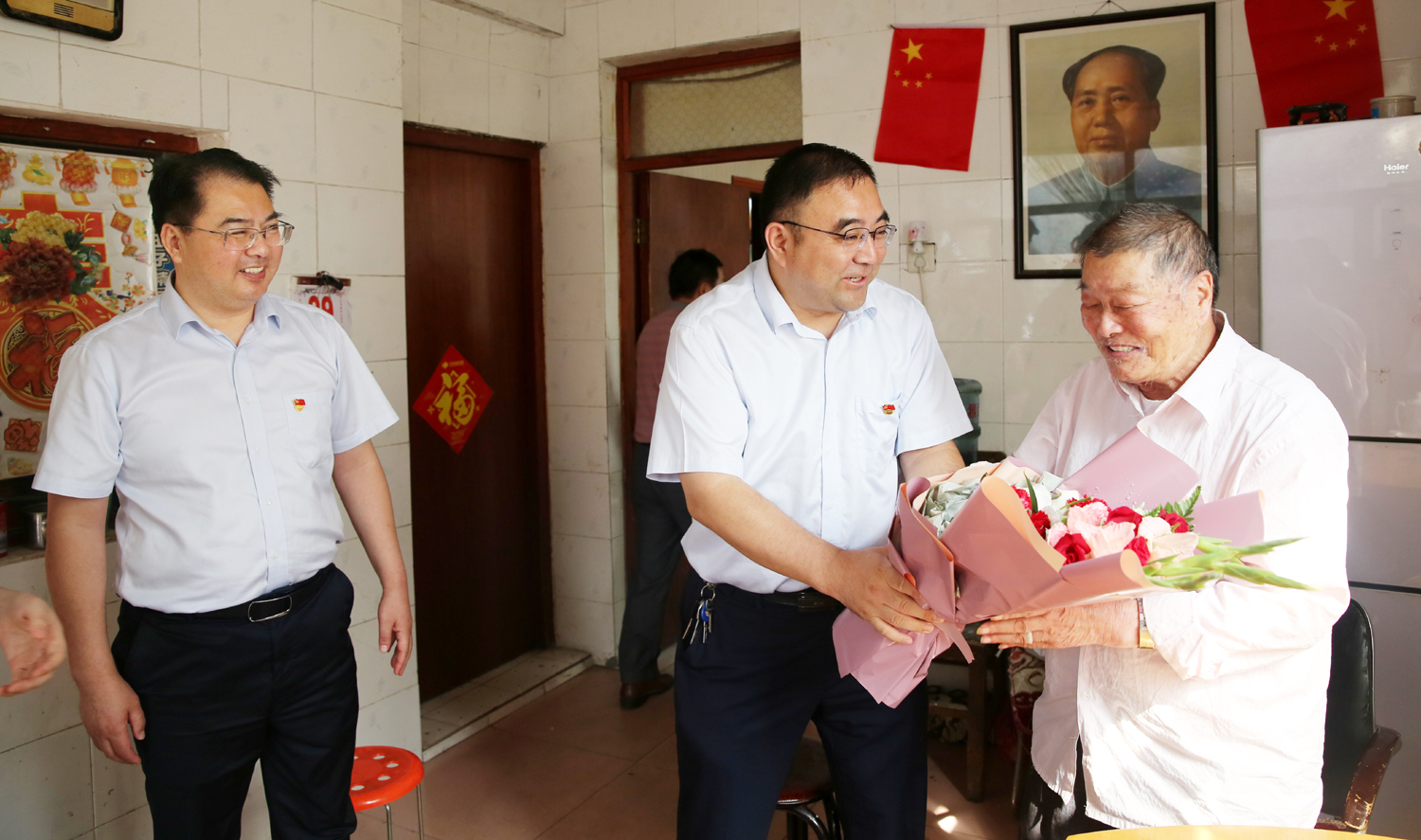 集團(tuán)公司董事長(zhǎng)、黨委書記楊龍,總經(jīng)理胡建明、黨委副書記戴鴻鳴、紀(jì)委書記汪群等領(lǐng)導(dǎo)分組走訪慰問部分建國前參加工作的老黨員、老干部,為他們送去慰問金和鮮花,同慶新中國七十周歲華誕。
