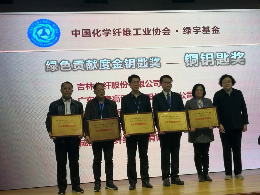3月11日—13日,集團公司總經理胡建明、副總經理王士華等一行先后參加了中國化纖協(xié)會六屆五次理事會和2019中國國際紡織紗線展。江蘇奧神新材料股份有限公司榮獲2019年度“中國化學纖維工業(yè)協(xié)會?綠宇基金”綠色貢獻度銅鑰匙獎。