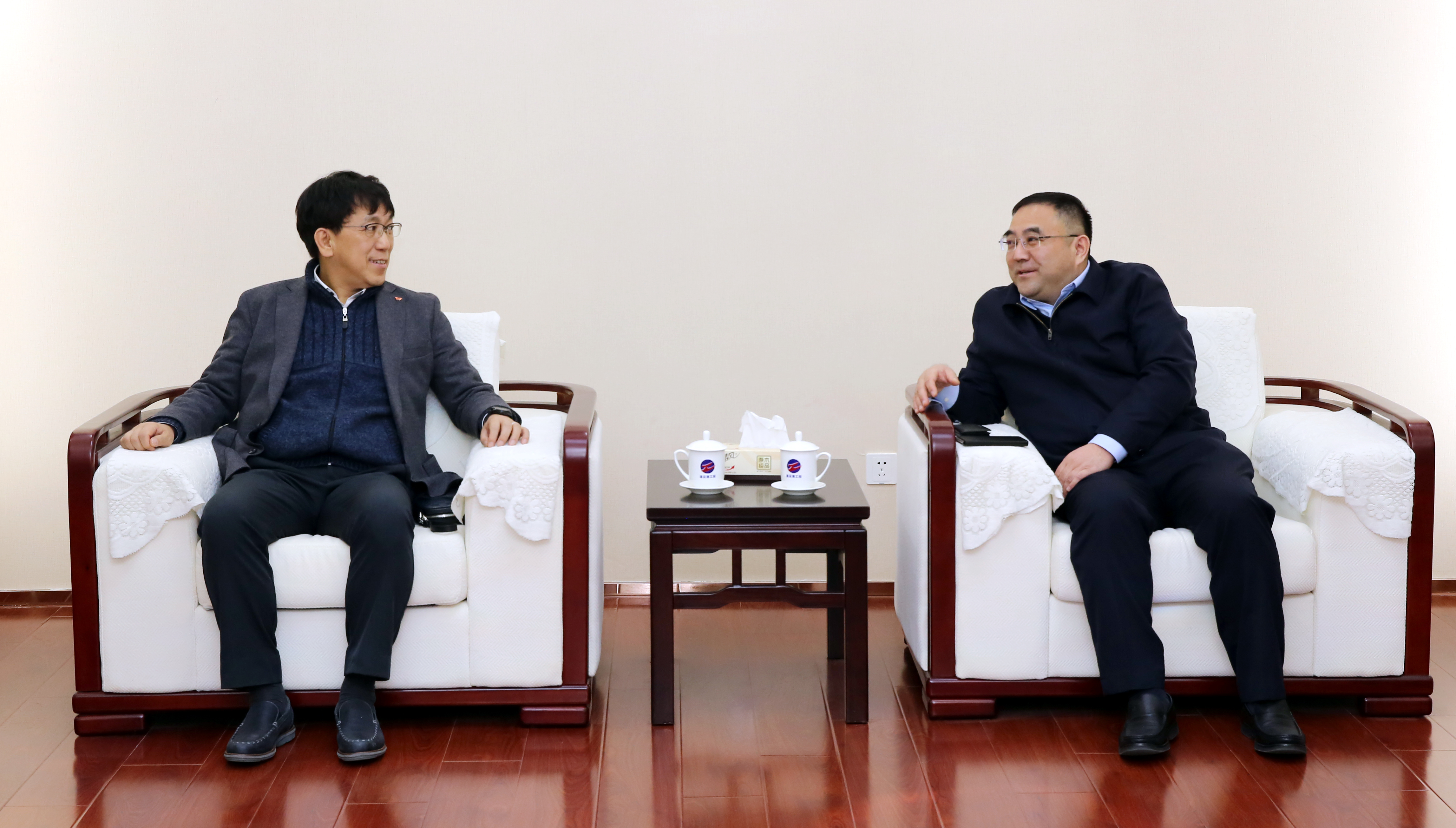 2月25日上午,集團(tuán)公司董事長(zhǎng)、黨委書記楊龍?jiān)诳偛繒?huì)見了韓國(guó)SKC集團(tuán)吳濬祿代表一行。雙方就在東海縣開發(fā)區(qū)合作投資項(xiàng)目進(jìn)行了座談交流。集團(tuán)公司常務(wù)副總經(jīng)理?xiàng)顕?guó)新以及資產(chǎn)管理公司相關(guān)負(fù)責(zé)人參加交流活動(dòng)。