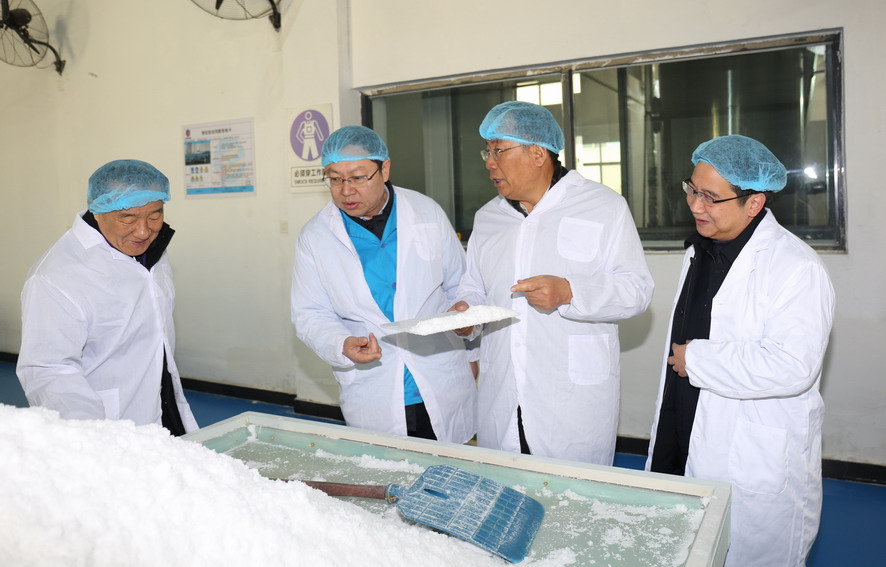 12月29日,中國鹽業(yè)協(xié)會理事長茆慶國一行到集團公司調研鹽業(yè)生產情況。集團公司常務副總經理楊國新陪同。