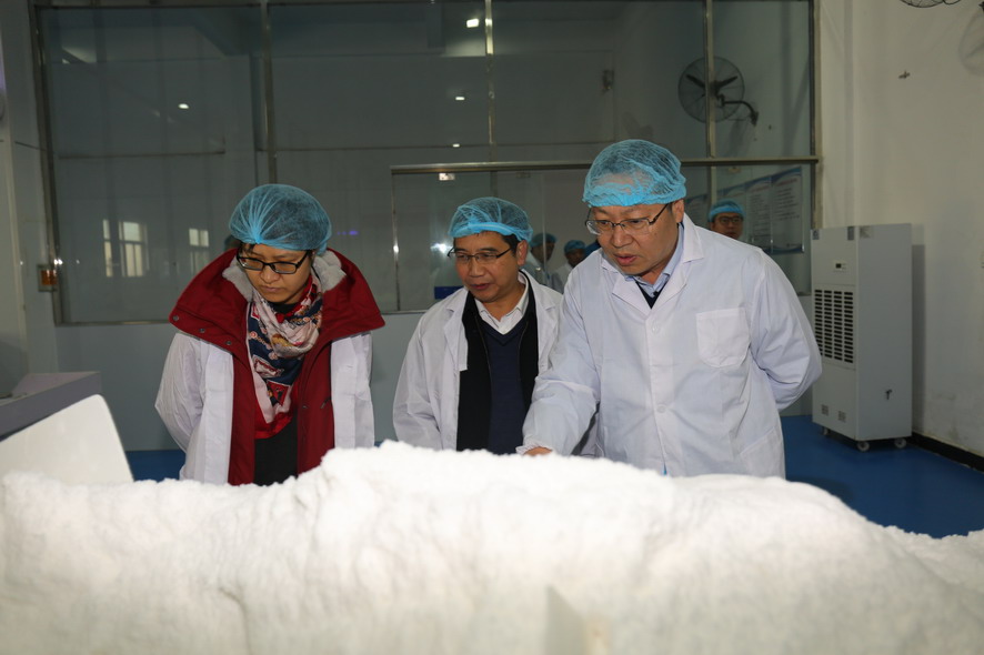 11月28日上午,國家市場監(jiān)督管理總局食品安全監(jiān)管司食鹽和食品添加劑監(jiān)管處副處長曹鑫在江蘇省市場監(jiān)管局食鹽監(jiān)管處副處長柳位林和連云港市場監(jiān)管局副局長袁明朗等陪同下,到金橋制鹽公司調(diào)研指導(dǎo)工作。集團(tuán)公司常務(wù)副總經(jīng)理楊國新以及金橋制鹽公司相關(guān)領(lǐng)導(dǎo)陪同調(diào)研。