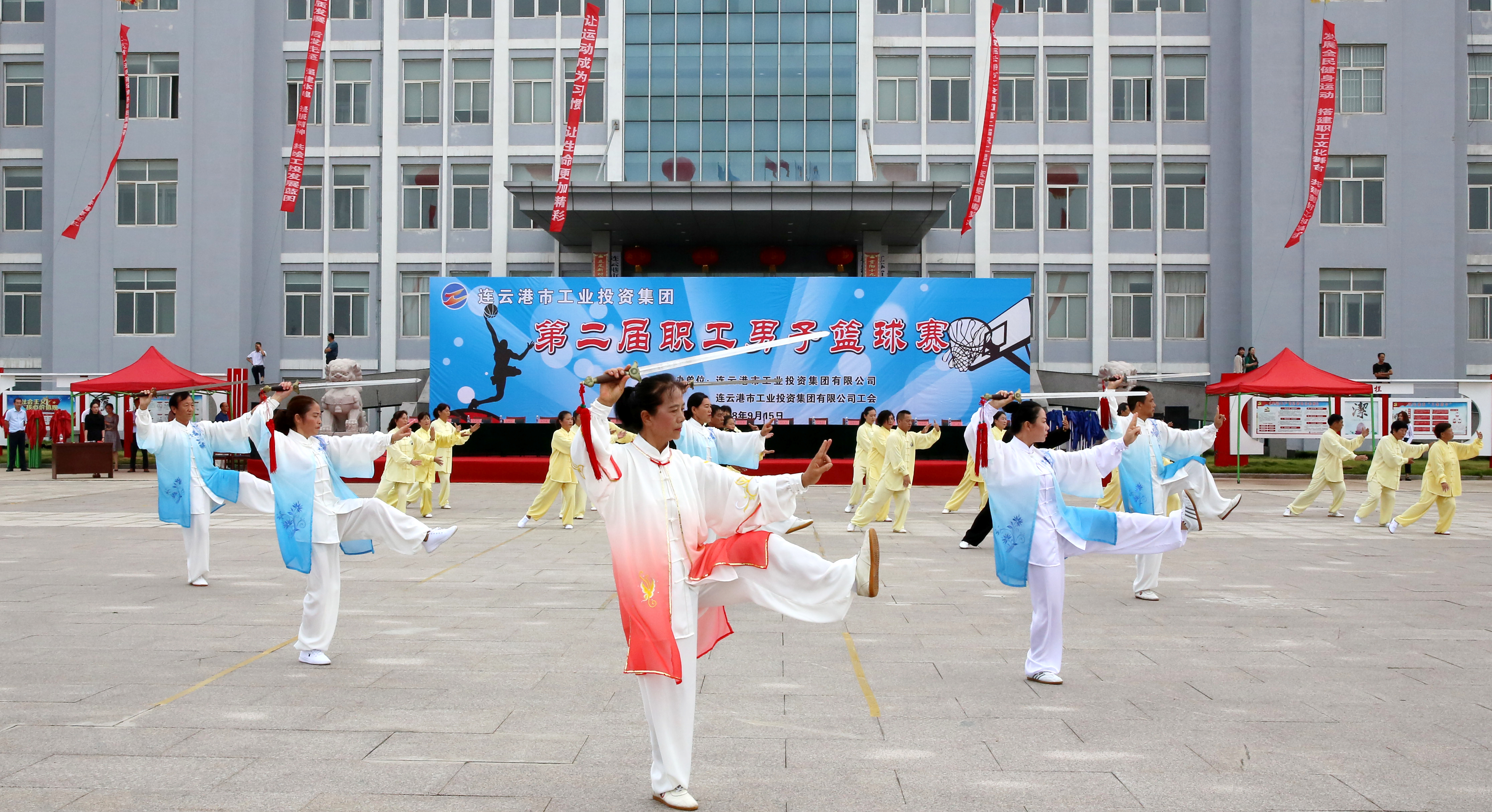 最后,楊龍宣布,連云港市工業(yè)投資集團(tuán)第二屆職工男子籃球賽開(kāi)幕。一時(shí)間,整個(gè)會(huì)場(chǎng)沸騰起來(lái),彩旗揮動(dòng),掌聲、歡呼聲經(jīng)久不息。
