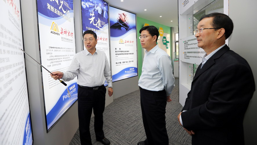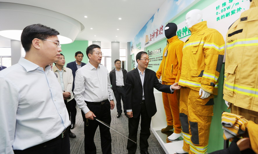 曹衛(wèi)東一行先后參觀了奧神新材料公司展廳和聚酰亞胺高性能纖維生產(chǎn)車間,并聽取了相關(guān)情況匯報(bào),對(duì)奧神新材料公司的研發(fā)能力和高性能纖維產(chǎn)業(yè)發(fā)展成效給予了充分肯定。曹衛(wèi)東指出,奧神新材料公司成立五年來,以創(chuàng)新驅(qū)動(dòng)轉(zhuǎn)型為動(dòng)力,致力推進(jìn)企業(yè)技術(shù)創(chuàng)新、產(chǎn)品創(chuàng)新和市場(chǎng)創(chuàng)新,取得了令人矚目的成績(jī)?!笆濉逼陂g,作為高性能纖維自主研發(fā)制造企業(yè)、聚酰亞胺纖維干法紡絲生產(chǎn)核心技術(shù)的掌握者,奧神新材料公司要進(jìn)一步突出高、新、優(yōu)特色,切實(shí)踐行創(chuàng)新發(fā)展理念,加強(qiáng)自主知識(shí)產(chǎn)權(quán)保護(hù),在聚酰亞胺纖維研發(fā)及生產(chǎn)方面著力突破新技術(shù)、提升創(chuàng)新力,推動(dòng)產(chǎn)業(yè)高端化、規(guī)模化、集聚化發(fā)展,打造國(guó)內(nèi)一流的新材料產(chǎn)業(yè)基地,為推動(dòng)連云港市纖維新材料產(chǎn)業(yè)發(fā)展做出新的貢獻(xiàn)。