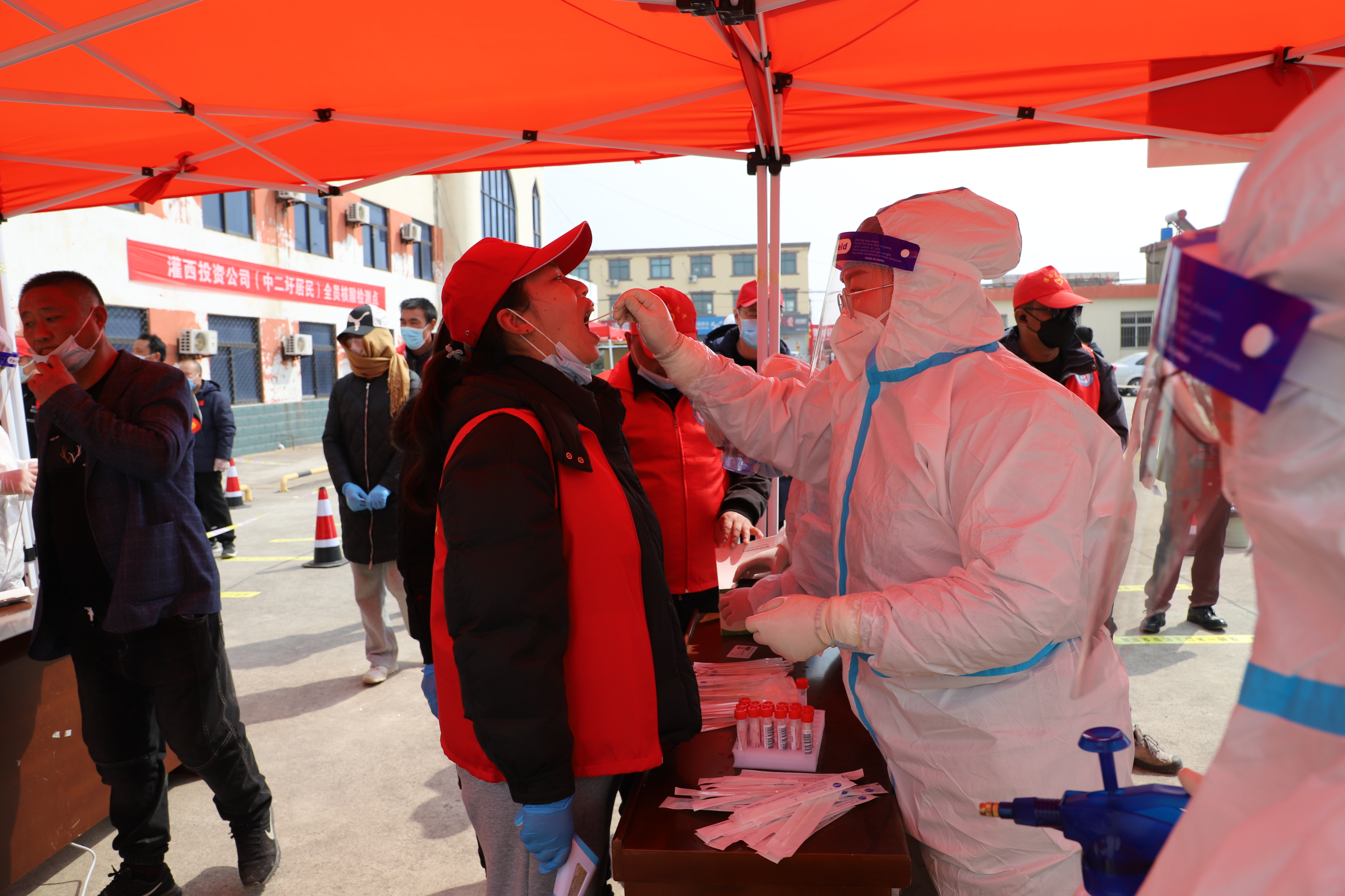 檢測當天,上午7點半核酸檢測點準備就緒,核酸檢測正式開始。檢測點用警戒線拉起通道,居民均按規(guī)定佩戴口罩有序排隊。排隊候檢的居民先登記身份信息及聯(lián)系方式,再由引導員帶隊到指定點位接受醫(yī)護人員的采樣,年紀大且腿腳不便的老人由現(xiàn)在志愿者攙扶,優(yōu)先進行核酸檢測。采樣完畢后,大家按照標識盡快從出口處離開檢測點,減少人員聚集。同時,積極提醒檢測人員注意安全、保持一定安全距離。整個過程緊張有序,核酸檢測工作于下午5點左右順利完成。