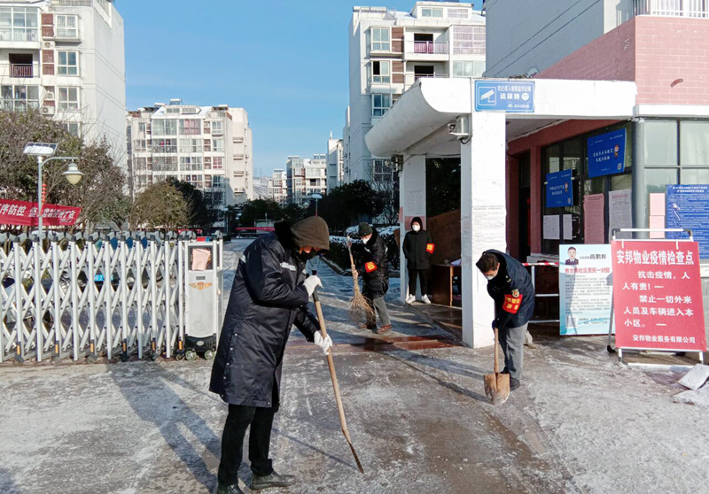 2月15日晚18:00時,徐圩悅升公司班子成員及各分公司黨政負(fù)責(zé)人全員出動,帶領(lǐng)18名突擊隊員快速趕赴新區(qū)上海路、徐圩大道、徐新路、金港路等主要交通要道,連續(xù)奮戰(zhàn)4個多小時,對橋梁、彎道等重點防滑路段進(jìn)行清雪防凍處理,共鋪灑融雪劑10余噸?!跋愫忧榫?、幸福家園”兩個職工小區(qū)防控疫情值守人員,不懼嚴(yán)寒,冒著大雪,在小區(qū)加強(qiáng)巡邏防控。該公司應(yīng)急大隊按照徐圩新區(qū)防疫指揮部要求,配合社區(qū)對珠江鋼管相關(guān)路道進(jìn)行封閉管控。