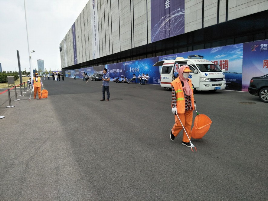 9月14日,連續(xù)忙碌了兩個禮拜的職工們還沒來得及休息,便又投入到“連博會”的準備工作中去。由于本屆“連博會”共有來自27個國家和地區(qū)的420家企業(yè)參展,展覽總面積達3.7萬平方米,各家展商在布置展臺時,各類生活垃圾、裝修垃圾等一度將該公司布設的100多個垃圾桶都塞滿了,在安排好人工清理的同時,該公司還安排垃圾清運車對積存垃圾進行清理清運,組織灑水車對會場及周邊道路進行沖洗,一直到9月18日晚上9點左右才完成準備工作。19日“連博會”開幕當天,負責現(xiàn)場保潔工作的職工們早上6點多就趕到了會場,冒雨在會場周邊開始忙碌,一臺大型清掃車和一臺灑水車也在會場旁隨時待命。到了中午,當展商們在室內小憩的時候,室外的職工們?yōu)榱瞬坏⒄`事,站在風口匆匆地扒拉兩口混雜著雨水的盒飯,就又投入到緊張的清理工作中去。僅19號開幕當天,累計清理各類垃圾7噸左右,為“連博會”的正常召開提供了一個干凈、整潔的會場環(huán)境。
