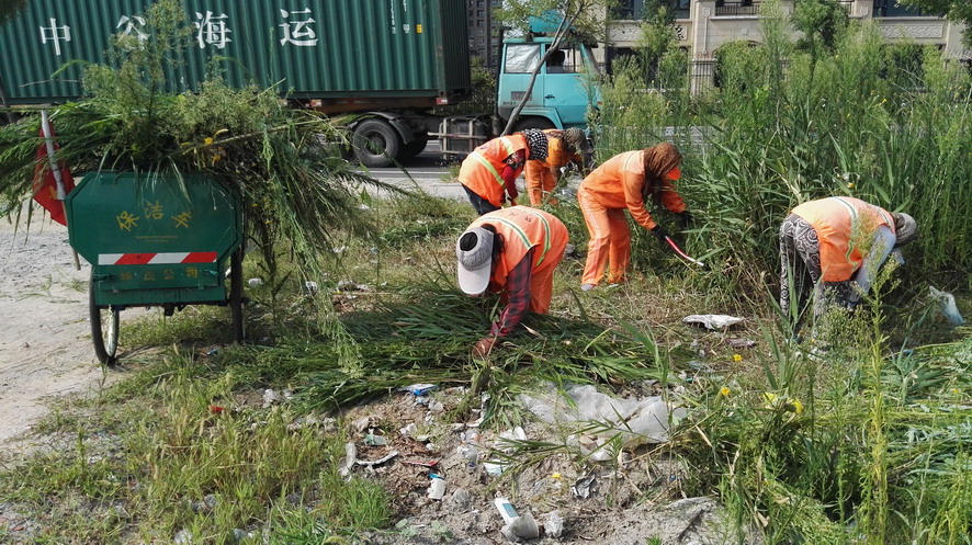 在昌圩湖環(huán)湖路南側一處公共廁所處,裕升養(yǎng)護公司20多名環(huán)衛(wèi)保潔工人正在清理公廁周邊的雜草、建筑垃圾,有的在割草、有的在搬磚、有的在推車,一個個汗流浹背,忙得不亦樂乎。正在現(xiàn)場忙碌的保潔大隊長劉保軍對筆者說:“這一塊段還沒有交給我們養(yǎng)護,一直無人管理,雜草叢生,成為建筑、裝修垃圾的堆放地,根據(jù)開發(fā)區(qū)創(chuàng)衛(wèi)環(huán)境衛(wèi)生無死角要求和華茂公司生產(chǎn)技術部門指令,我們裕升養(yǎng)護公司承擔這一區(qū)域環(huán)境衛(wèi)生突擊整治任務,從綠化保潔班組抽調20多人來搞突擊,大家面對天氣炎熱、工作量大、清理困難等因素,發(fā)揚不怕吃苦、敢打硬仗的華茂精神,奮戰(zhàn)在突擊現(xiàn)場,每個人都汗流不止,工作服全被汗水浸透,昨天我們已在這里整整干了一天,由于垃圾量大、雜草面積大,我們動用了裝載機等機械設備,運雜草的三輪車跑近百趟,清理建筑、裝修等垃圾數(shù)十噸。估計今天下午能夠全部結束?!?/span>