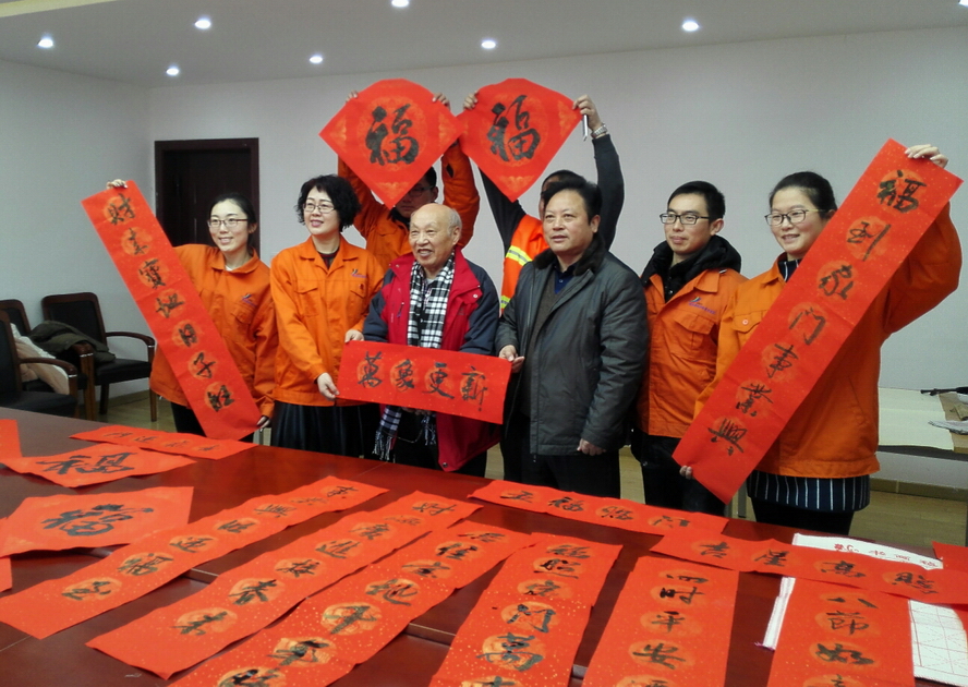 1月20日,連云港市雜文學(xué)會邀請陳鳳桐等3名知名書法家走進華茂綠化工程公司,為一線環(huán)衛(wèi)職工寫春聯(lián),送上濃濃的新春祝福!