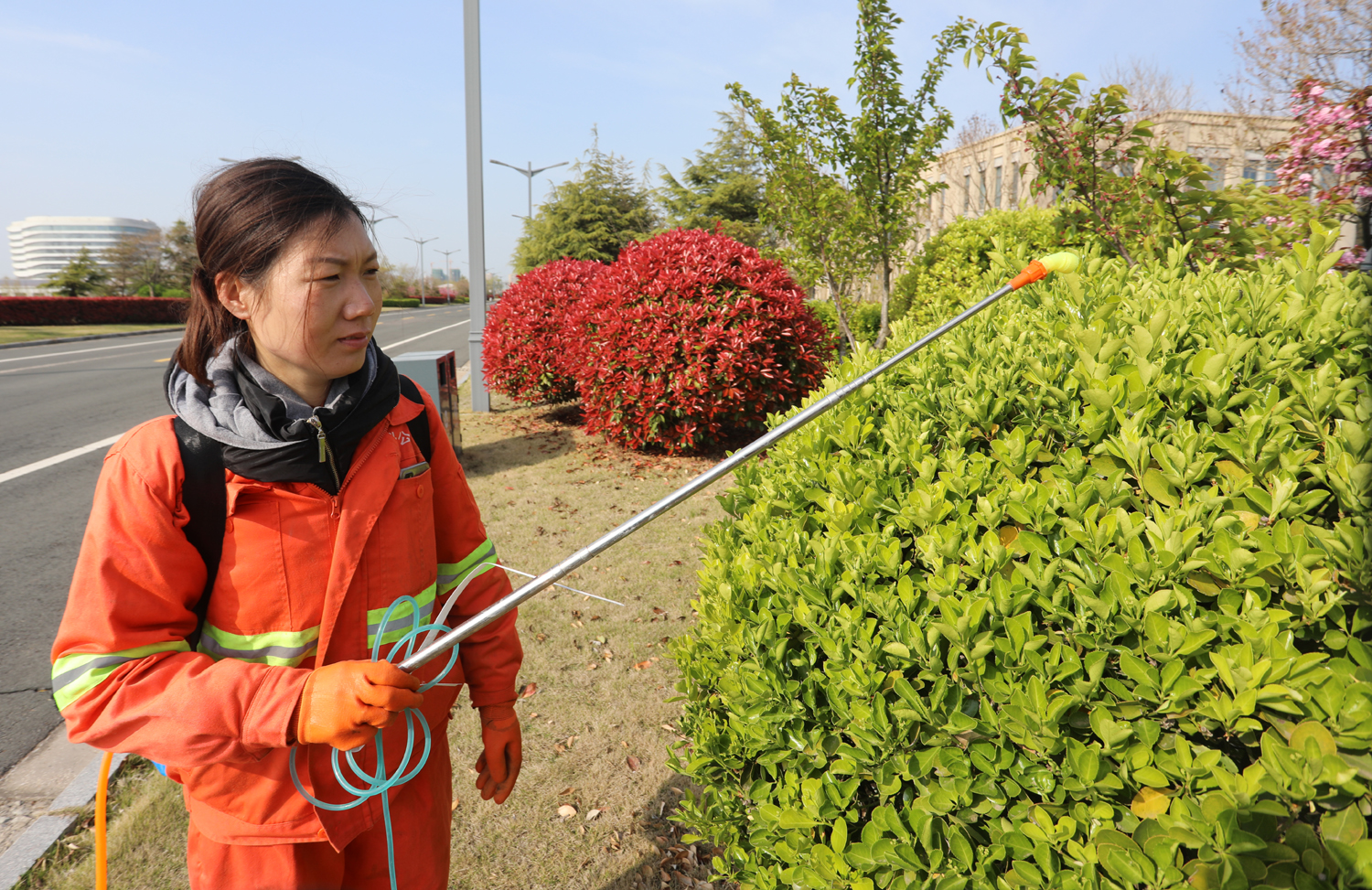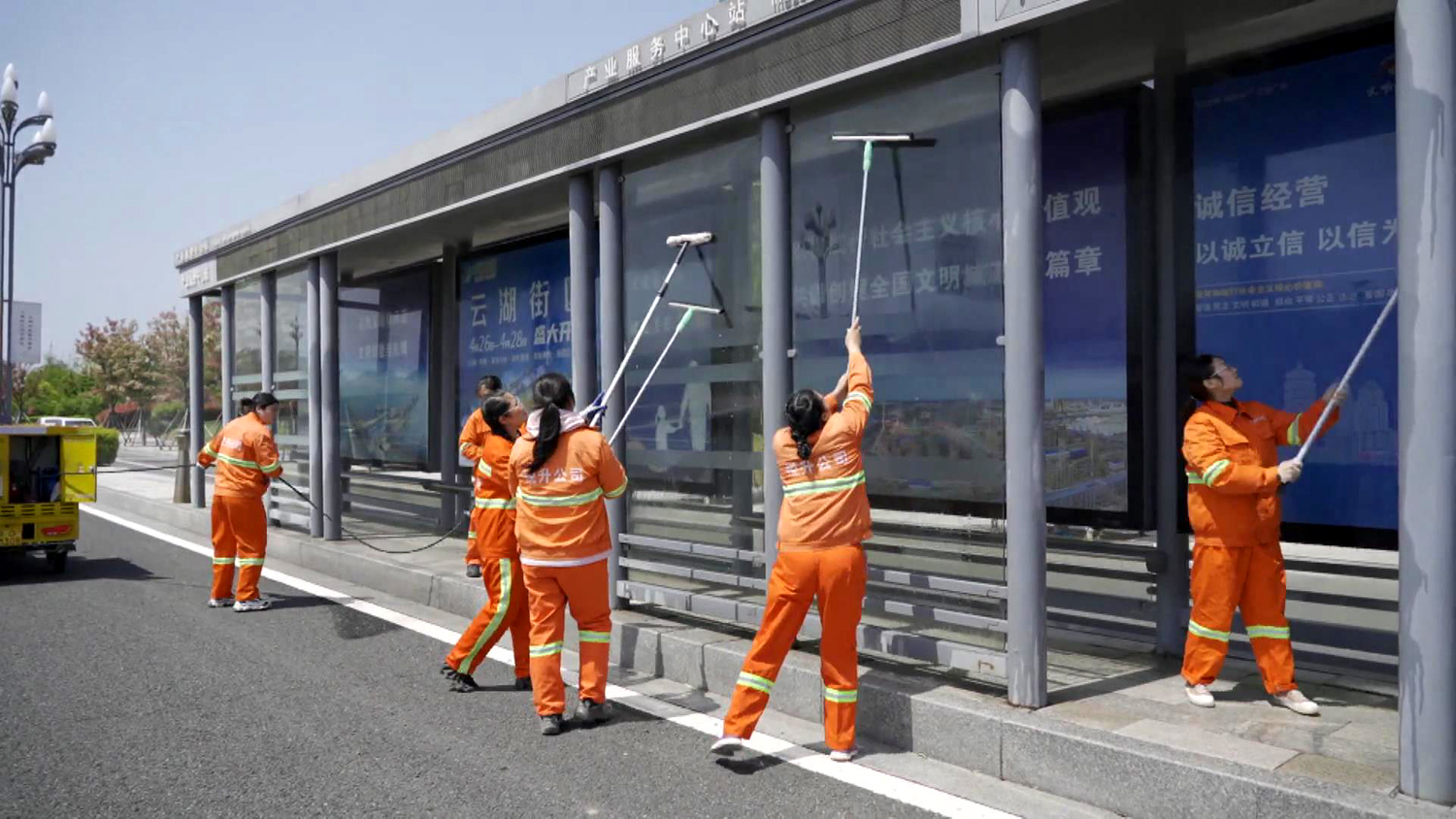 龔飛作為女子班班長,她不僅要管理好徐圩新區(qū)核心區(qū)域50萬平方米道路保潔和8個(gè)站臺清洗、施工路段的垃圾清撿“規(guī)定動(dòng)作”,同時(shí)還要完成保潔面積40000平方米“自選動(dòng)作”。