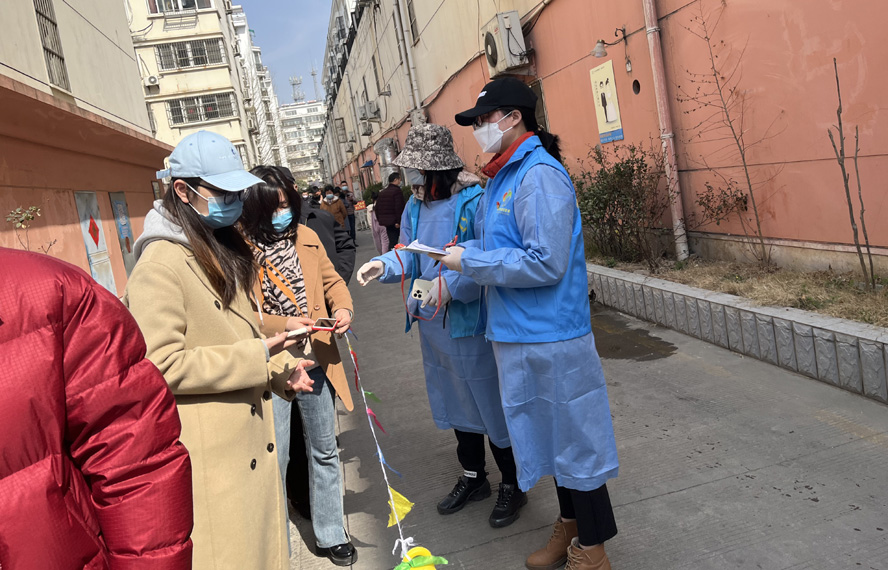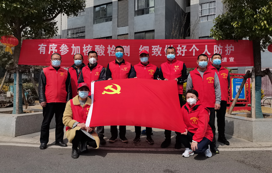 除了在崗員工,還有退休黨員秦英、孫芳等,在疫情發(fā)生前,他們是公司內(nèi)退黨員,在疫情爆發(fā)以后,他們是無(wú)所畏懼的抗疫戰(zhàn)士。隨著連云港開(kāi)始第一輪全員核酸檢測(cè),工作人員和志愿者都嚴(yán)重短缺,每天確診病例激增的數(shù)據(jù)都令人觸目驚心。當(dāng)看到招募志愿者的公告時(shí),秦英熱血沸騰?!包h和人民需要我,我的家鄉(xiāng)需要我!”主動(dòng)聯(lián)系海州區(qū)幸福路街道西大嶺社區(qū),在咨詢志愿者報(bào)名的同時(shí),鄭重地并向社區(qū)遞交了一份疫情防控“請(qǐng)戰(zhàn)書(shū)”。