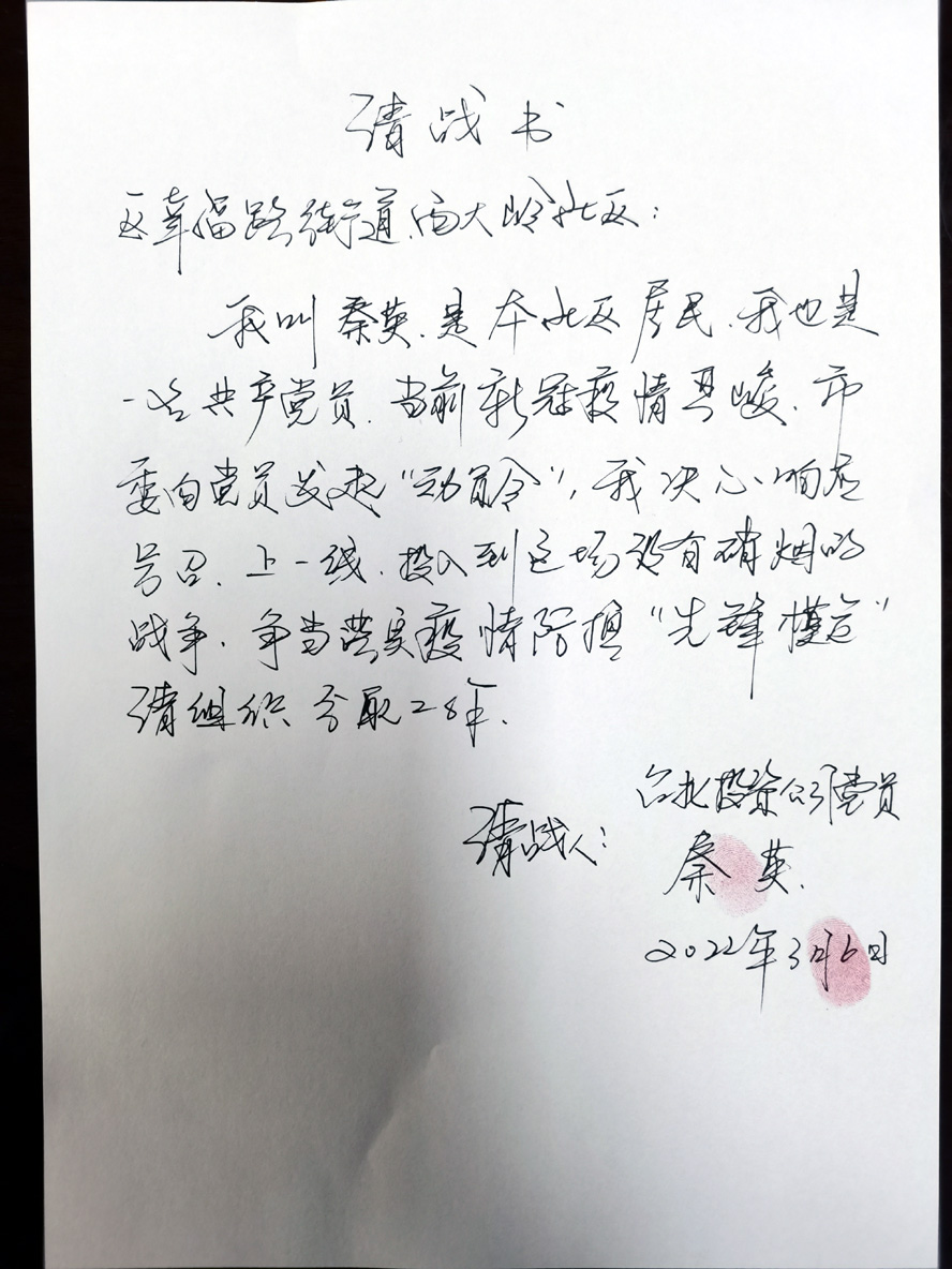 隨著市政府的快速響應(yīng),不到中午就開始全區(qū)核酸檢測(cè),突地一下工作人員不夠用了?!耙咔榫褪敲?,防控就是責(zé)任”,秦英主動(dòng)聯(lián)系海州區(qū)幸福路街道西大嶺社區(qū),在咨詢志愿者報(bào)名的同時(shí),鄭重地并向社區(qū)遞交了一份疫情防控“請(qǐng)戰(zhàn)書”。與此同時(shí),她還動(dòng)員她所在的“工投舞蹈隊(duì)”一幫姐妹,迅速成立一支抗疫志愿者隊(duì)伍,自發(fā)維護(hù)小區(qū)防控秩序,參與小區(qū)噴灑消毒、衛(wèi)生清掃、鄰居物資代購、心理疏導(dǎo)等工作中。幾千人的小區(qū)在她的感染帶動(dòng)下,擰成一股繩、攥成一個(gè)拳,群防群控,筑起一道廣泛堅(jiān)實(shí)的防疫戰(zhàn)線。