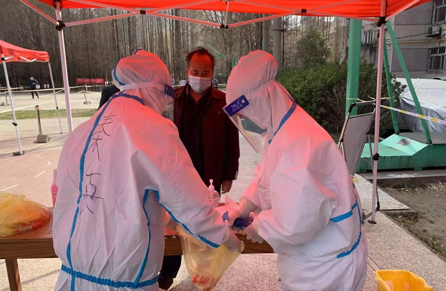 然而隨著疫情愈發(fā)嚴(yán)重,小區(qū)核酸檢測(cè)員人手又緊張了起來,“我可以,這幾天我都學(xué)會(huì)了,最基本的我都會(huì)”秦英又是第一個(gè)舉手到最前線。這下她更忙了,每天凌晨三點(diǎn)起床做飯,五點(diǎn)社區(qū)報(bào)到,一直堅(jiān)守到晚上八點(diǎn)。為了節(jié)省防護(hù)服,她一般都要等到中午2點(diǎn)多鐘才休息吃飯,這股毅力讓社區(qū)、街道領(lǐng)導(dǎo)看在眼里、服在心上,連一直牢騷怪話的幾個(gè)群眾也為她由衷地豎起大拇指。