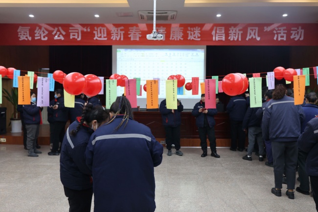 2月7日,新春佳節(jié)來臨之際,杜鐘氨綸公司紀(jì)委組織“迎新春 猜廉謎 倡新風(fēng)”活動(dòng)。職工歡聚一堂,通過謎語與廉潔相結(jié)合的形式共同迎接龍年。
