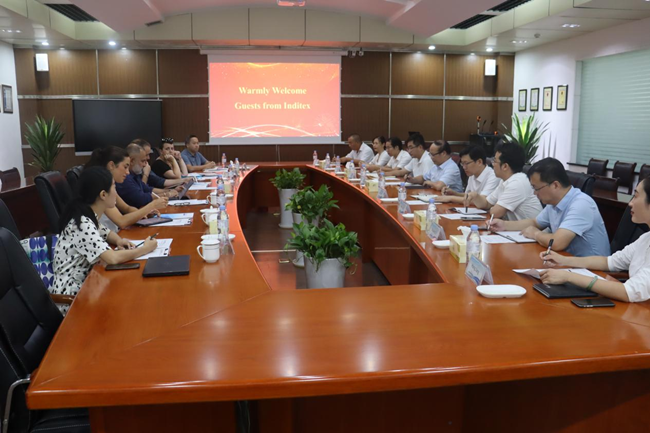 張斌董事長(zhǎng)首先歡迎INDITEX集團(tuán)一行人的到來(lái),介紹了杜鐘氨綸公司發(fā)展史及在可持續(xù)新產(chǎn)品開(kāi)發(fā)應(yīng)用前景發(fā)展方面戰(zhàn)略規(guī)劃的基本情況;INDITEX集團(tuán)及旗下品牌ZARA也向我們展示了其產(chǎn)品創(chuàng)新和在可循環(huán)發(fā)展的經(jīng)營(yíng)思路,對(duì)公司再生GRS產(chǎn)品、生物基、消費(fèi)后氨綸再生產(chǎn)品的發(fā)展產(chǎn)生濃厚興趣,對(duì)公司在可持續(xù)再生產(chǎn)品的研發(fā)能力表達(dá)認(rèn)可及合作意向。