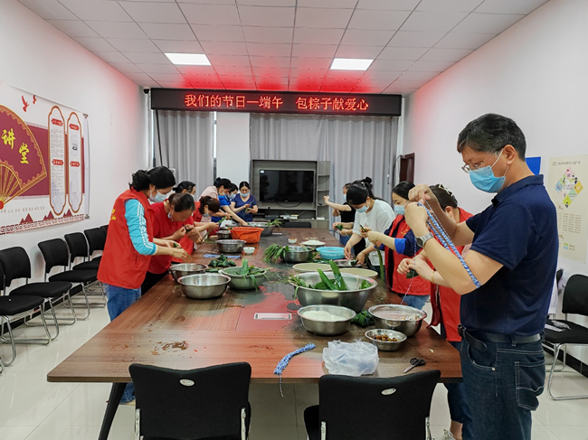活動中,公司員工與社區(qū)居民共同開展包粽子比賽,期間公司領導詢問了社區(qū)工作情況,雙方就新時代黨建引領下的社企共建工作進行了深入交談并為社區(qū)空巢老人和困難群眾送上了粽子、大米、牛奶、食用油等慰問品。