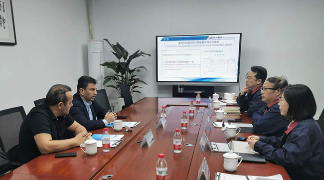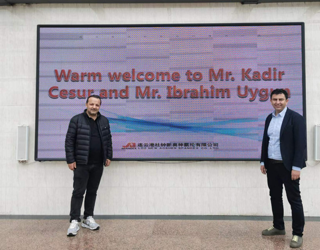 隨著疫情的結(jié)束以及紡織服裝市場(chǎng)的回暖,近日,土耳其NOGATEX公司總經(jīng)理IBRAHIM和銷售總監(jiān)KADIR到訪氨綸公司,對(duì)雙方的戰(zhàn)略合作方向進(jìn)行了探討和交流。這是繼2016、2018年之后客戶的第三次來訪,董事長(zhǎng)張斌對(duì)他們的到來表示熱烈歡迎。