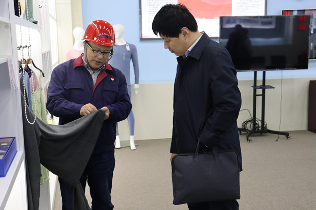 呂處長對我公司低溫?zé)嵴澈习本]、抗菌氨綸、驅(qū)蚊氨綸及生產(chǎn)全流程自動化、智能化生產(chǎn)線等給予了高度評價,希望公司乘風(fēng)破浪,進一步深入實施差別化戰(zhàn)略、后道特色產(chǎn)品發(fā)展戰(zhàn)略,再創(chuàng)針織行業(yè)輝煌。