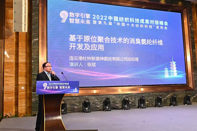 本次會議以“數(shù)字引擎 智慧未來”為主題,氨綸公司申報的“基于原位聚合技術(shù)的消皇氨綸纖維開發(fā)及應(yīng)用”項目榮獲“中國十大紡織科技·新銳科技獎”。