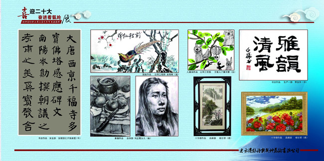 本次活動(dòng)共征集到80多幅作品,職工作品流派紛呈、形式多樣,書法作品有革命詩詞也有經(jīng)典歌賦,有名言警句也有勵(lì)志格言;繪畫作品包含了國畫、油畫、水彩、版畫等種類。活動(dòng)作品從不同的角度展現(xiàn)了祖國的秀美河山、城鄉(xiāng)的風(fēng)土人情和溫馨的生活場景。