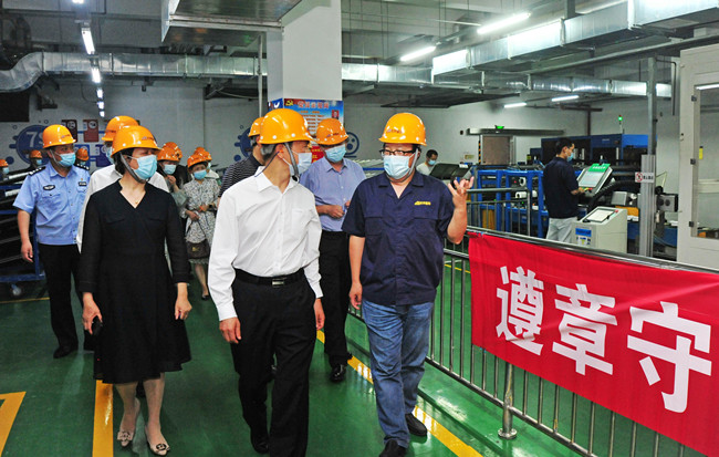 一行人先后參觀了公司展廳、黨員活動室、八期生產(chǎn)線、自動化包裝線等。參觀過程中,公司總經(jīng)理張斌對杜鐘氨綸公司的發(fā)展歷程,差別化產(chǎn)品、戰(zhàn)略優(yōu)勢、積極開拓營銷渠道,創(chuàng)新運用新媒體傳播方式推進商品銷售等進行了詳細介紹。副市長陳紅淦對氨綸公司低溫熱粘合氨綸、抗菌氨綸、驅(qū)蚊氨綸給予了高度評價。希望公司進一步深入實施差別化氨綸及后道特色產(chǎn)品發(fā)展戰(zhàn)略的重大舉措,乘風破浪,再創(chuàng)行業(yè)輝煌。