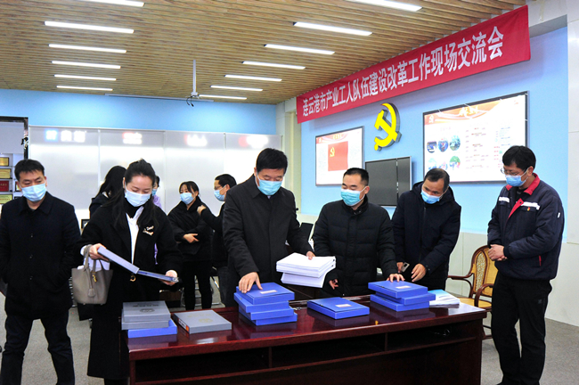 12月7日上午,連云港市總工會黨組書記、副主席丁維杰和工會副主席陳健一行15人來到氨綸公司,通過查閱臺賬,聽取工作匯報等形式對我公司產(chǎn)業(yè)工人隊伍建設改革工作亮點工作及經(jīng)驗做法開展交流,集團黨委副書記戴鴻鳴、集團工會主席劉承志、公司總經(jīng)理張斌出席交流會。