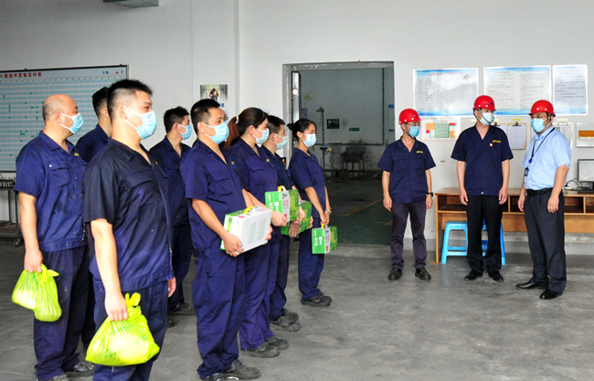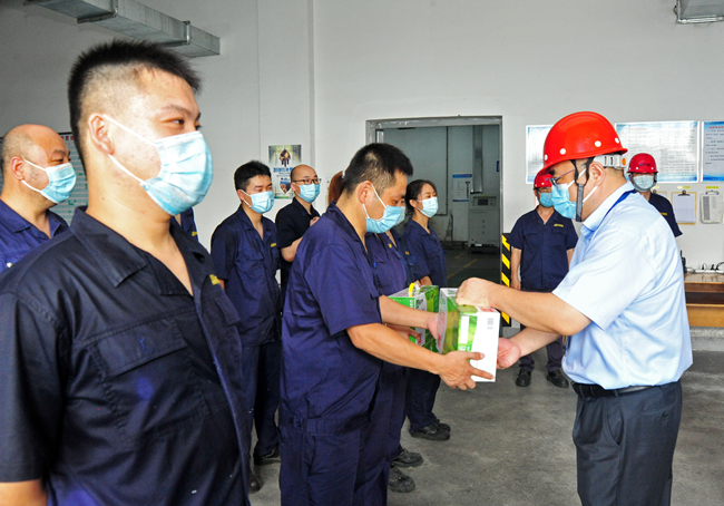 進入盛夏以來持續(xù)高溫,為向堅守崗位的一線職工表達敬意和關(guān)懷。8月2日上午,集團黨委書記、董事長楊龍一行人來我公司慰問高溫工作環(huán)境下的一線員工,公司黨委書記胡傳法、副總經(jīng)理張華衛(wèi)陪同。