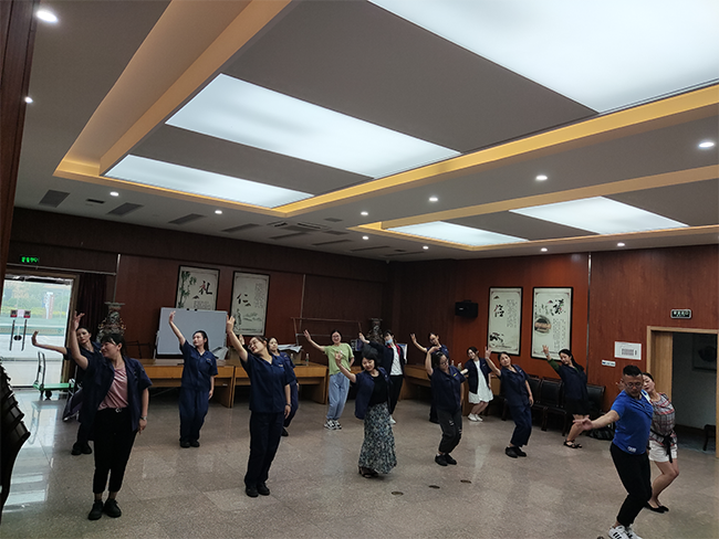 此次活動(dòng)是公司近幾年來,組織、抽調(diào)人數(shù)最多的一次文藝活動(dòng),公司工會(huì)組織專人負(fù)責(zé),與基層各部門協(xié)商抽調(diào)15名職工組成舞蹈隊(duì)。隊(duì)員們?yōu)榱斯ぷ髋啪殐刹徽`,利用休息時(shí)間加班加點(diǎn)完成本職工作。許多職工以前從未接觸過舞蹈,四肢較僵硬,不協(xié)調(diào),在困難面前,沒有人選擇退縮,而是以破釜沉舟的精神苦練,休息時(shí)間去請(qǐng)教跳的較好的同事學(xué)習(xí)動(dòng)作,一遍又一遍直到學(xué)會(huì)動(dòng)作。排練過程中大家齊心協(xié)力,共同努力,相互打氣,不喊苦,不喊累。大家表示會(huì)全力以赴參加排練,爭取取得圓滿的成績,展現(xiàn)出公司職工健康向上的激情與活力,體現(xiàn)出公司職工團(tuán)隊(duì)協(xié)作的精神。