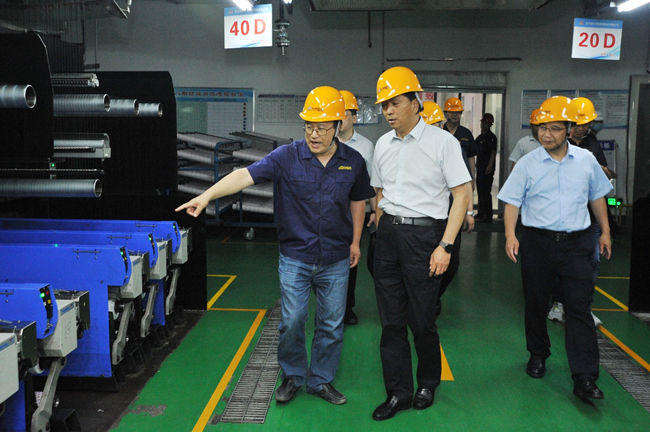 2021年6月23日下午,賈伊生常委領(lǐng)導(dǎo)一行來(lái)到氨綸公司指導(dǎo)調(diào)研,集團(tuán)常務(wù)副總經(jīng)理?xiàng)顕?guó)新,氨綸公司黨委書(shū)記胡傳法、總經(jīng)理張斌等領(lǐng)導(dǎo)陪同。