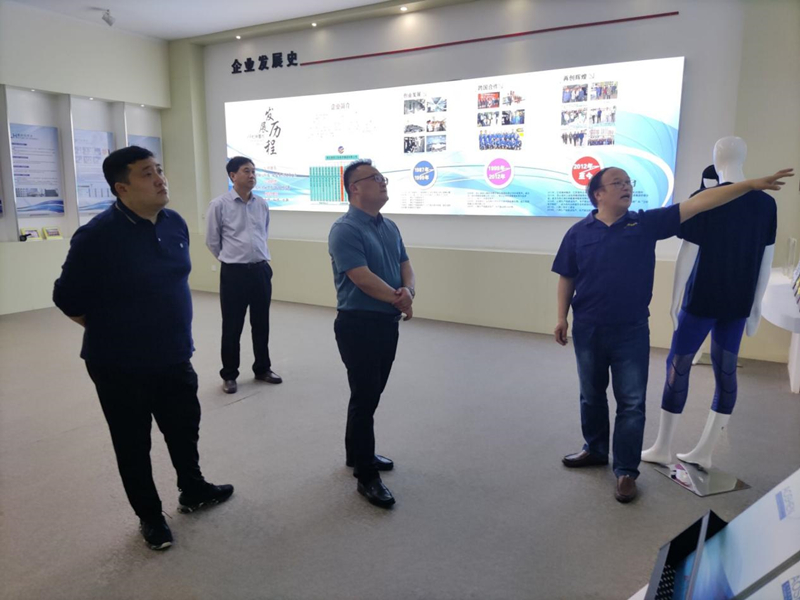 一行人先后參觀了公司展廳、八期生產(chǎn)線、自動化包裝線等。參觀過程中,公司總經(jīng)理張斌對我公司的發(fā)展歷程,差別化產(chǎn)品、戰(zhàn)略優(yōu)勢、積極開拓營銷渠道,創(chuàng)新運用新媒體傳播方式推進商品銷售等進行了詳細介紹。孫書記對我公司低溫?zé)嵴澈习本]、抗菌氨綸、驅(qū)蚊氨綸及氨綸生產(chǎn)全流程自動化、智能化生產(chǎn)線等給予了高度評價。希望雙方加強交流深化合作,攜手共創(chuàng)美好未來。