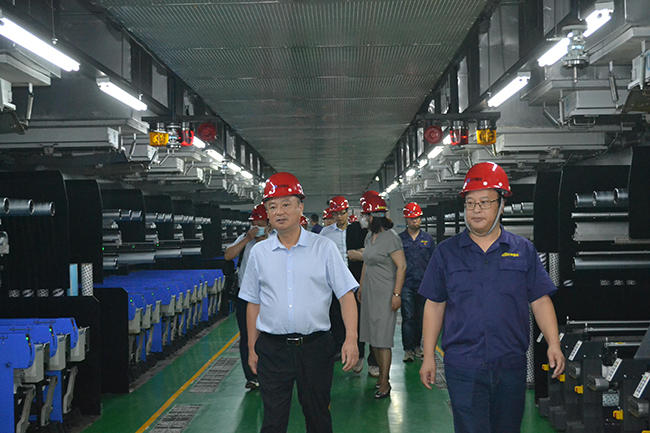 李永良一行人先后參觀了公司展廳、黨員活動(dòng)室、抖音直播間、八期生產(chǎn)線、自動(dòng)化包裝線等。參觀過程中,公司總經(jīng)理張斌對(duì)我公司的發(fā)展歷程,差別化產(chǎn)品、戰(zhàn)略優(yōu)勢(shì)、等進(jìn)行了詳細(xì)介紹。李永良對(duì)我公司低溫?zé)嵴澈习本]、抗菌氨綸、驅(qū)蚊氨綸及氨綸生產(chǎn)全流程自動(dòng)化、智能化生產(chǎn)線等給予了高度評(píng)價(jià)。希望公司進(jìn)一步深入實(shí)施差別化氨綸及后道特色產(chǎn)品發(fā)展戰(zhàn)略的重大舉措,乘風(fēng)破浪,再創(chuàng)行業(yè)輝煌。