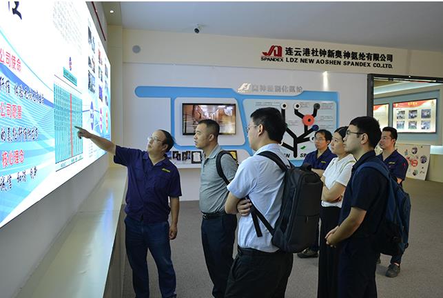蔣根杰一行先后參觀了公司展廳、黨員活動(dòng)室、抖音直播間、八期生產(chǎn)線、自動(dòng)化包裝線、研發(fā)中心等。參觀過程中,公司總經(jīng)理張斌對(duì)氨綸公司的發(fā)展歷程,差別化產(chǎn)品、戰(zhàn)略優(yōu)勢(shì)、積極開拓營(yíng)銷渠道,創(chuàng)新運(yùn)用新媒體傳播方式推進(jìn)商品銷售等進(jìn)行了詳細(xì)介紹。蔣根杰對(duì)氨綸公司低溫?zé)嵴澈习本]、抗菌氨綸、驅(qū)蚊氨綸及氨綸生產(chǎn)全流程自動(dòng)化、智能化生產(chǎn)線等給予了高度評(píng)價(jià)。希望公司進(jìn)一步深入實(shí)施差別化氨綸及后道特色產(chǎn)品發(fā)展戰(zhàn)略的重大舉措,乘風(fēng)破浪,再創(chuàng)針織行業(yè)輝煌。