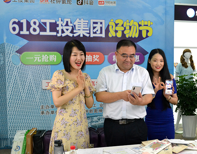 6月18日,集團公司黨委書記、董事長楊龍走進氨綸公司直播間,為“618工投集團好物節(jié)”代言。