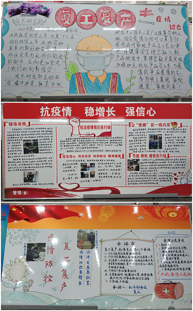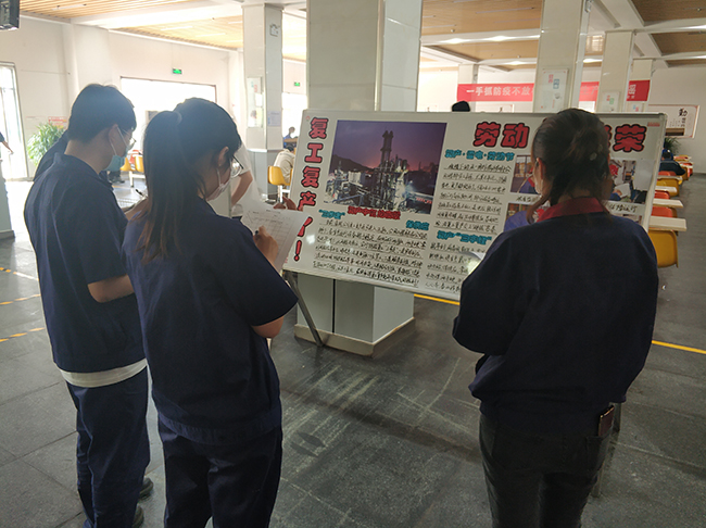 5月21日,公司開展了以“抗疫情•復工復產”為主題的板報評比活動。來自生產一部、生產二部、品保部、公用工程部、生產設備部、技術研發(fā)部以及管理部門的7個部門參加了評比。
