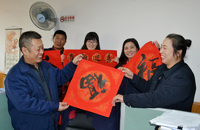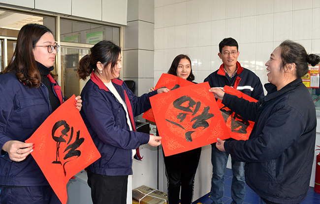 這些書畫作品出自連云港知名書畫家之手,春聯(lián)對仗工整、簡潔精巧的文字描繪美好形象,抒發(fā)了美好愿景。作為新年的祝福,此次活動(dòng)廣受員工歡迎,大家表示活動(dòng)既營造了濃濃的節(jié)日氛圍,也拉近了員工之間的距離。