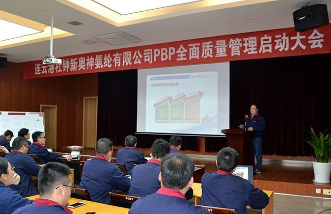 會(huì)上,公司總經(jīng)理張斌為啟動(dòng)大會(huì)致辭。在簡(jiǎn)要介紹了全面質(zhì)量管理的概念后,張總強(qiáng)調(diào)全面質(zhì)量管理不僅是技術(shù)、管理、統(tǒng)計(jì)的結(jié)合,也是從設(shè)計(jì)、生產(chǎn)、售后服務(wù)的全流程管理,具有十分重要的意義。張總分別從原料管理、設(shè)備管理、工藝管理、操作管理、產(chǎn)品管理五個(gè)方面詳細(xì)說(shuō)明了全面質(zhì)量管理的內(nèi)容及流程,并以俄羅斯名言“農(nóng)場(chǎng)最好的肥料是主人的足跡。足跡越多,收獲越好”,激勵(lì)大家全身心投入到全面質(zhì)量管理活動(dòng)中來(lái)。技術(shù)總監(jiān)孫振波詳細(xì)闡述了實(shí)行PBP的目的、PBP的組織機(jī)構(gòu)及PBP的推行計(jì)劃。
