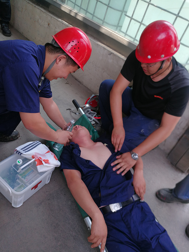 為了檢驗(yàn)我公司職業(yè)危害救援組織反應(yīng)速度、救援能力以及協(xié)同配合、演練救援技能,氨綸公司于2019年6月12日10:00組織一次職業(yè)病應(yīng)急預(yù)案演練,演練隊(duì)伍針對(duì)一名員工發(fā)生高溫中暑危害開展應(yīng)急救援演練。