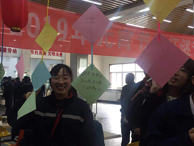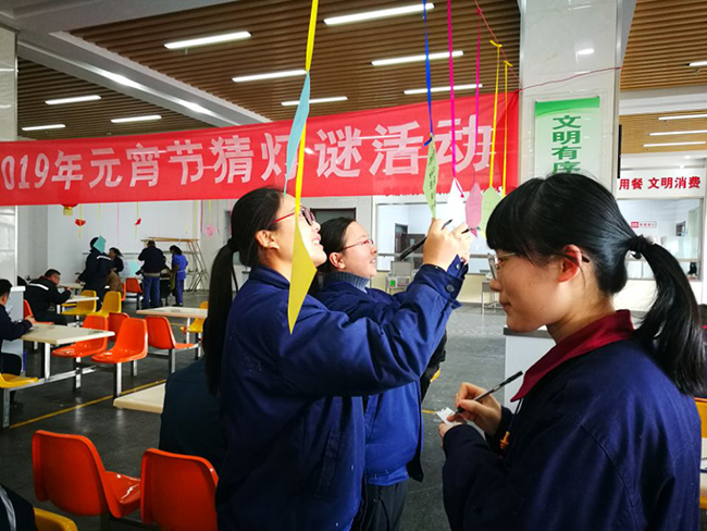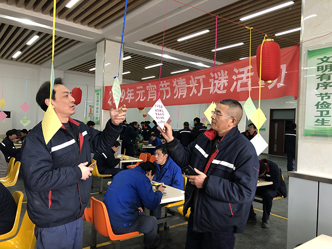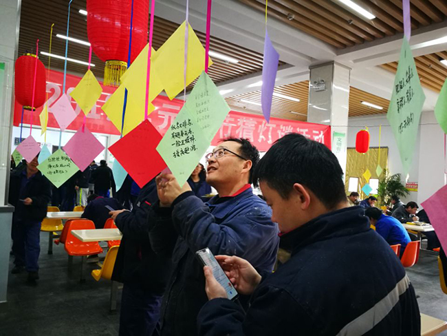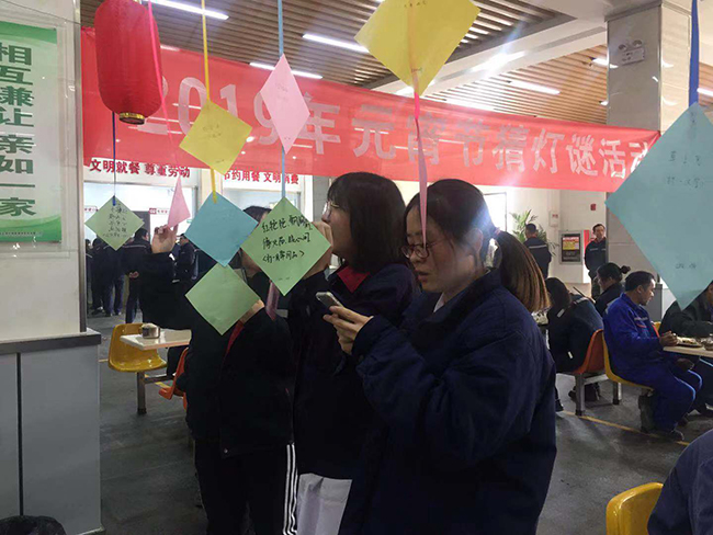 2月19日正月十五元宵節(jié),氨綸公司舉辦的元宵節(jié)猜燈謎活動(dòng)在公司食堂如火如荼的展開(kāi)了。公司食堂懸掛起近百條五顏六色的謎語(yǔ)紙片和燈籠,廣大全體員工踴躍參加。