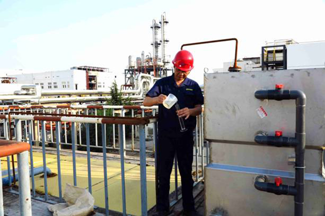 一直以來,公司秉承“綠色發(fā)展”的理念,在具體操作中采用“掐頭截尾”法進行污水排放綜合治理。“掐頭”即要求各責(zé)任部門強力監(jiān)督治理源頭,實施廢液進行循環(huán)利用,對違規(guī)部門要求限期整改,情節(jié)嚴(yán)重的追究相關(guān)責(zé)任人責(zé)任。“截尾”即抓污水處理工藝提升優(yōu)化,保證污水處理設(shè)備正常運行和污水處理質(zhì)量,不達標(biāo)堅決不排放。與此同時,主動邀請環(huán)保部門和第三方權(quán)威機構(gòu)對現(xiàn)有污水處理設(shè)備提供環(huán)保法規(guī)指導(dǎo)和技術(shù)支持,水樣檢測實現(xiàn)在線檢測,并與環(huán)保監(jiān)控平臺聯(lián)網(wǎng),確保工業(yè)污水達標(biāo)排放。