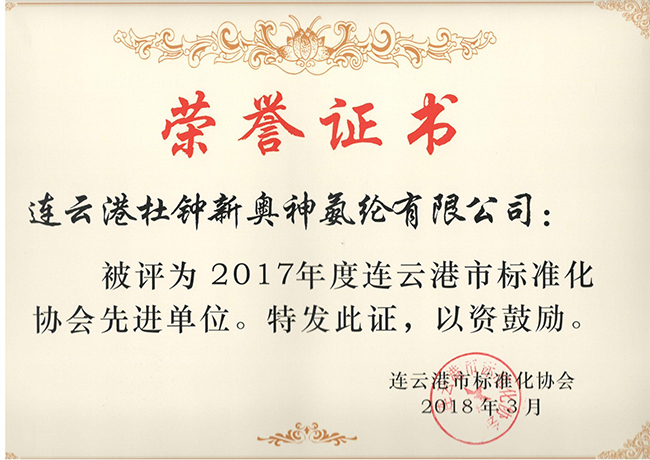 氨綸公司以積極推進(jìn)標(biāo)準(zhǔn)化建設(shè)為手段,全面提升科學(xué)管理,取得了良好成效。2017年,公司大力開展“5S”管理,公司管理水平和員工素質(zhì)得到了很大提升,獲得了連云港市標(biāo)準(zhǔn)化協(xié)會(huì)頒發(fā)的“2017年度連云港市標(biāo)準(zhǔn)化協(xié)會(huì)先進(jìn)單位”榮譽(yù)稱號(hào)。