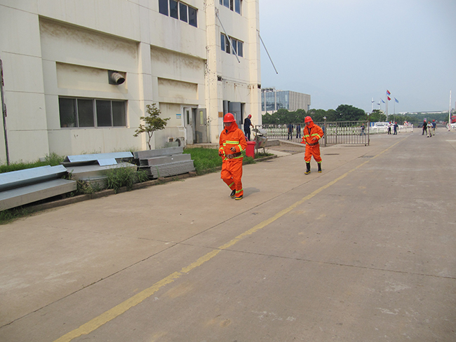 事前安全部做了充足的準(zhǔn)備,從演練方案、材料準(zhǔn)備和人員安排等方面做足準(zhǔn)備工作,先是在會議室進(jìn)行了桌面演練,確定演練方案可行后,于15:00開始正式演練。演練模擬四期二樓甬道間6線3#位導(dǎo)熱油發(fā)生泄漏起火,操作人員發(fā)現(xiàn)后,立即匯報并進(jìn)行現(xiàn)場應(yīng)急處置。后險情擴(kuò)大,公司領(lǐng)導(dǎo)啟動應(yīng)急預(yù)案,應(yīng)急行動組、現(xiàn)場控制組、后勤保障組各司其職,隔離現(xiàn)場、應(yīng)急救援、疏散人員。后在消防人員的協(xié)助下,大火被成功撲滅。演練中,全體參演人員,精神飽滿,恪盡職守,動作規(guī)范,各部門通力合作,演練共用時間20分鐘,并安排微型消防站人員穿著專用制服對現(xiàn)場進(jìn)行了巡視,確認(rèn)無人受困,整個演練過程合計(jì)從車間疏散出38人,達(dá)到了通過應(yīng)急演練鍛煉隊(duì)伍,檢驗(yàn)應(yīng)急預(yù)案的目的,演練達(dá)到了預(yù)期,取得圓滿成功。