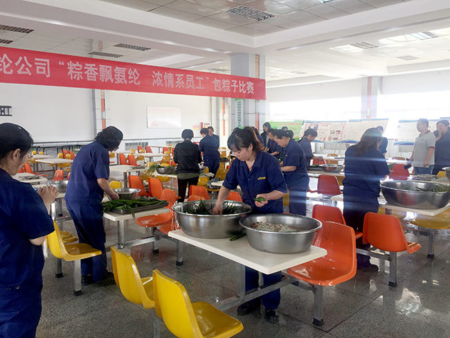 為傳承和弘揚(yáng)中國(guó)傳統(tǒng)文化,迎接傳統(tǒng)節(jié)日“端午節(jié)”的到來(lái),進(jìn)一步豐富員工文化生活,增強(qiáng)干部員工團(tuán)隊(duì)協(xié)作能力。2017年5月24日,氨綸公司在食堂舉辦一場(chǎng)別開(kāi)生面的“包粽子”比賽,此次活動(dòng)由公司工會(huì)主辦,組織各部門干部員工,共20余人參加比賽。