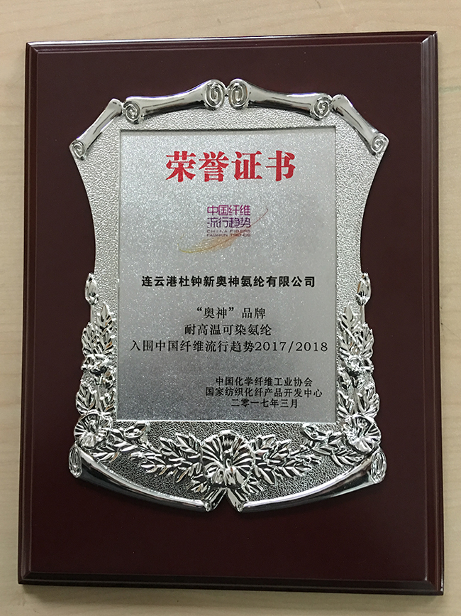 近年來,氨綸公司緊緊把握流行趨勢(shì),緊跟時(shí)代步伐,牢固樹立以“新品研發(fā)促企業(yè)發(fā)展”的戰(zhàn)略目標(biāo),將新品研發(fā)作為企業(yè)發(fā)展的核心,不斷加大研發(fā)投入,陸續(xù)開發(fā)出超柔、耐高溫、有色、衛(wèi)材等多系列產(chǎn)品,多項(xiàng)產(chǎn)品處于同行業(yè)前列。此次,氨綸公司“奧神”品牌耐高溫可染氨綸成功入圍“中國纖維流行趨勢(shì)2017/2018”,再次證明了我公司在新品研發(fā)和把握市場(chǎng)方面的實(shí)力,也進(jìn)一步擴(kuò)大了“奧神”品牌的影響力。
