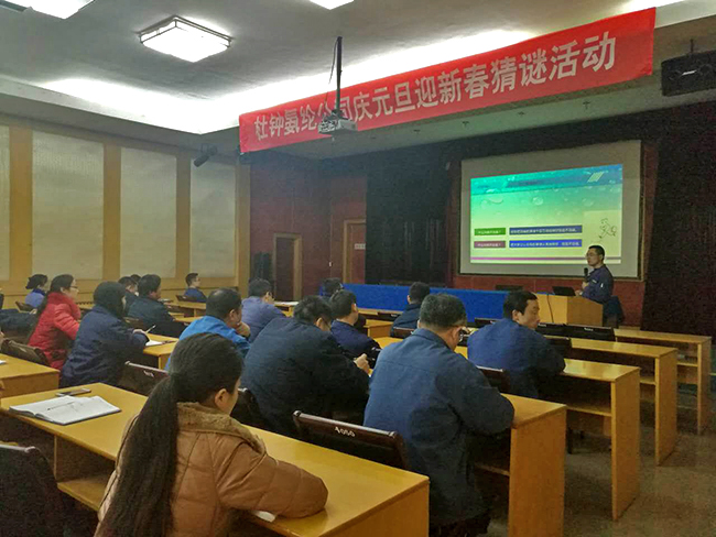 2017年1月12日氨綸課堂首次培訓(xùn)在多功能廳成功舉行。此次培訓(xùn)邀請(qǐng)氨綸公司副總經(jīng)理張華衛(wèi)主講,公司各部門(mén)主管、生產(chǎn)助理、班長(zhǎng)、單管、安全員及儲(chǔ)備大學(xué)生50余人參加了培訓(xùn)。